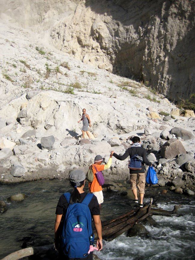We stopped at a place that looked like a valley and this is where you'll see the need to either bring slippers or sneakers suitable for hiking cross country. The first task of the 3 hour hike to the top was to cross a river bank that was knee deep, but on our way back was a lot higher. Make sure your gadgets are all water proof sealed either in ziplocks or in specialized water proof gear. The hike after the river crossing was no easy task. With the guide leading the was and fortunately helping our female companions with their rather heavy gear, showed us the easiest and quickest route to the original entrance to the hike to Mt Pinatubo prior to its eruption. The hike from our drop off point to the original entrance was 3 hours, the hike back though was about an hour and 45 minutes. I guess that is because on the way to the top we were all too busy taking pictures :).